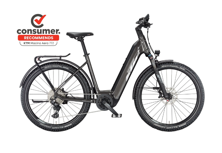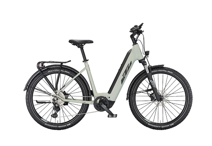 With the KTM Macina Aera 772 LFC you get a comfortable as well as sporty city SUV with off-road equipment. Thanks to the Suntour XCR 34 suspension fork with 80 mm travel, Shimano Deore gears and thick Schwalbe Johnny Watts tires, you can easily break out of the urban routine and let off steam even on rough terrain. A Bosch Smart System drive with 85 Nm of torque and a 750 Wh battery provide constant thrust. In addition, the Aera 772 LFC comes with mudguards, a Litemove lighting system and a Racktime rack with pannier holder - well equipped for extra long weekend tours with luggage.